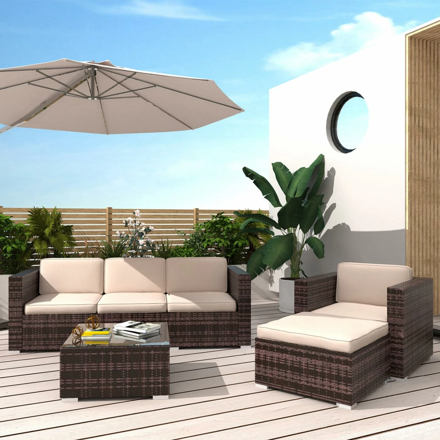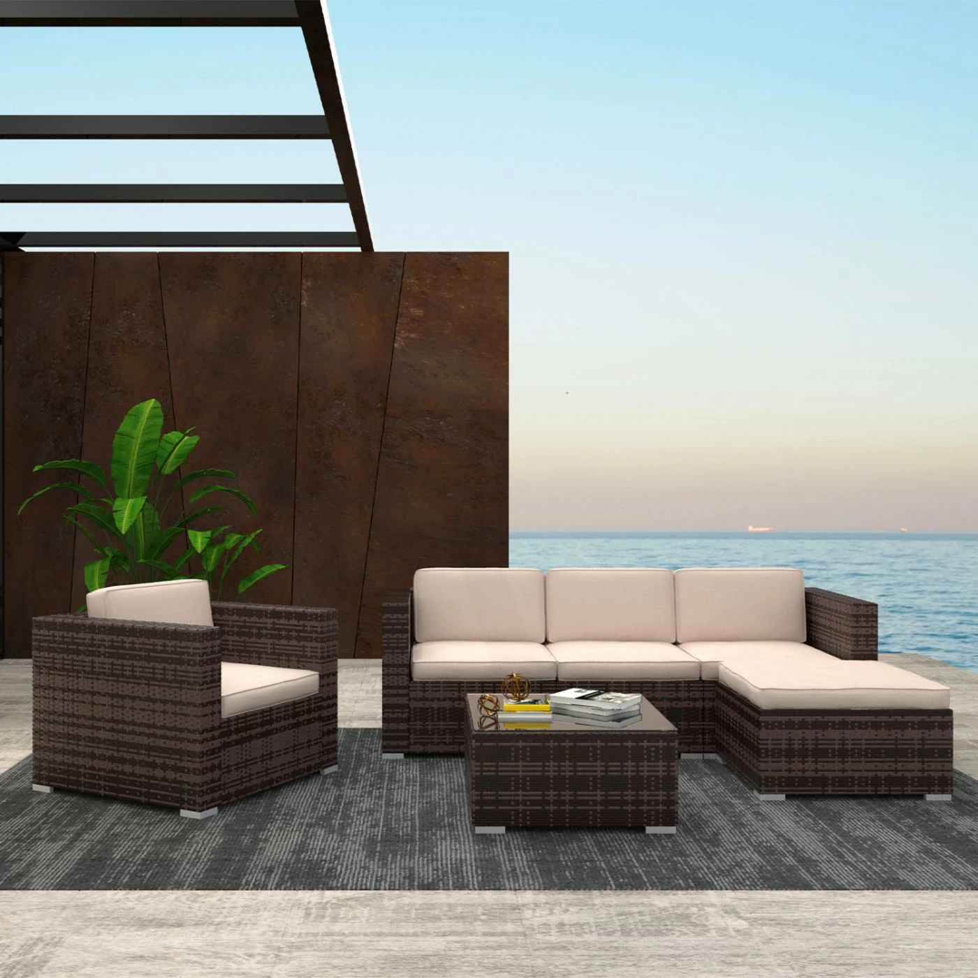 Upgrade your outdoor patio or garden area with lavish comfort and the sleek styling of the Cloud Mountain Sofa and Chair 4 Piece Resin Wicker Patio Conversation Set. This 4 piece patio conversation set adds style to your garden or backyard arrangement. The fashionable modern rattan design complements any space and the durable construction will make this piece a favorite of yours for summers to come. This luxurious set will create a beautiful and relaxing outdoor living space for you and your guests.