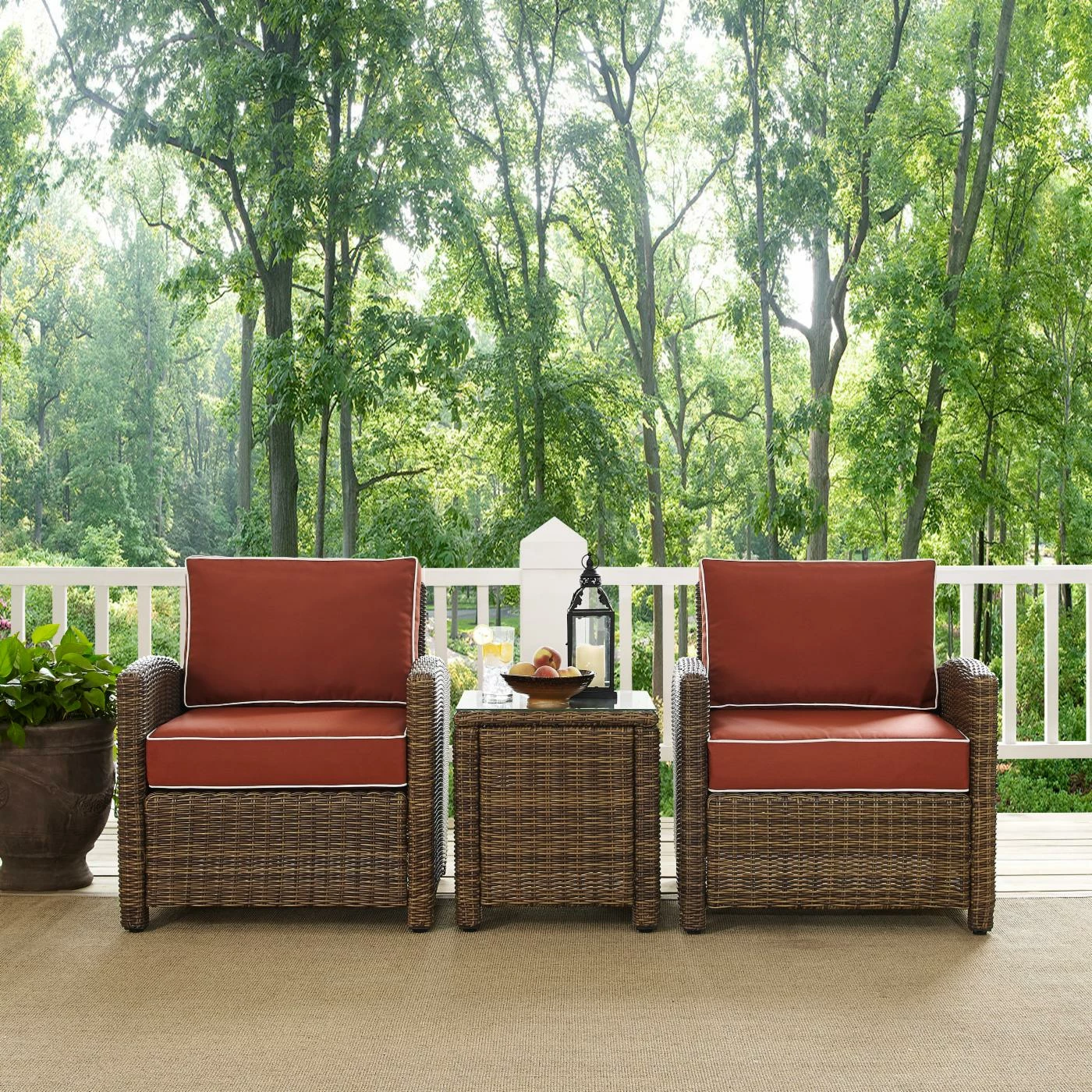 Don’t just vow to spend more time outside this summer — make it happen with the Crosley Bradenton 3 Piece Wicker Conversation Set with Cushions. A breezy addition to any porch or patio, this all-in-one set comes complete with two armchairs and a handy side table topped by easy-clean glass.