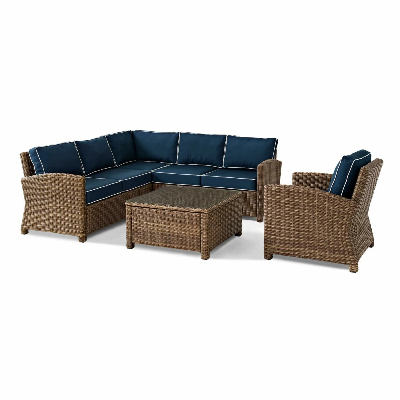 If you’ve dreamed of that perfect patio setup, wake up and check out the Crosley Bradenton 5 Piece Outdoor Wicker Conversation Set. Dreamy but definitely not a dream, this conversation set comes with everything you need to create that outdoor living space you’ve always wanted – a modular sectional sofa with a left-corner loveseat, right-corner loveseat, and corner chair, plus a separate armchair and glass-top coffee table.