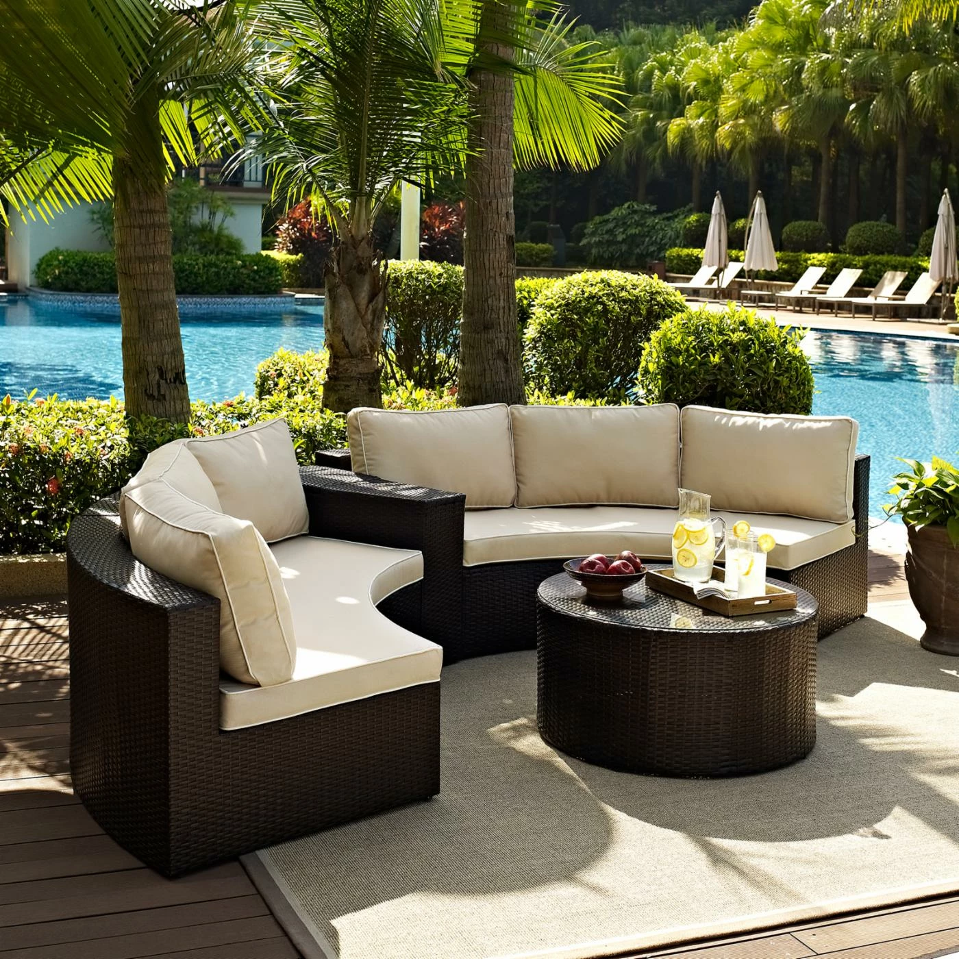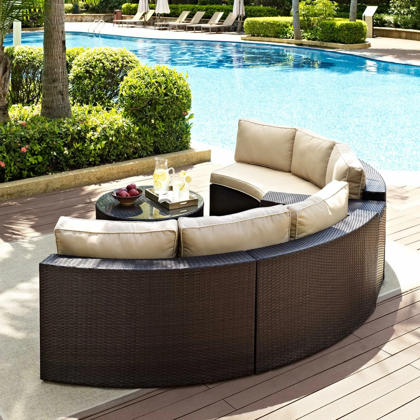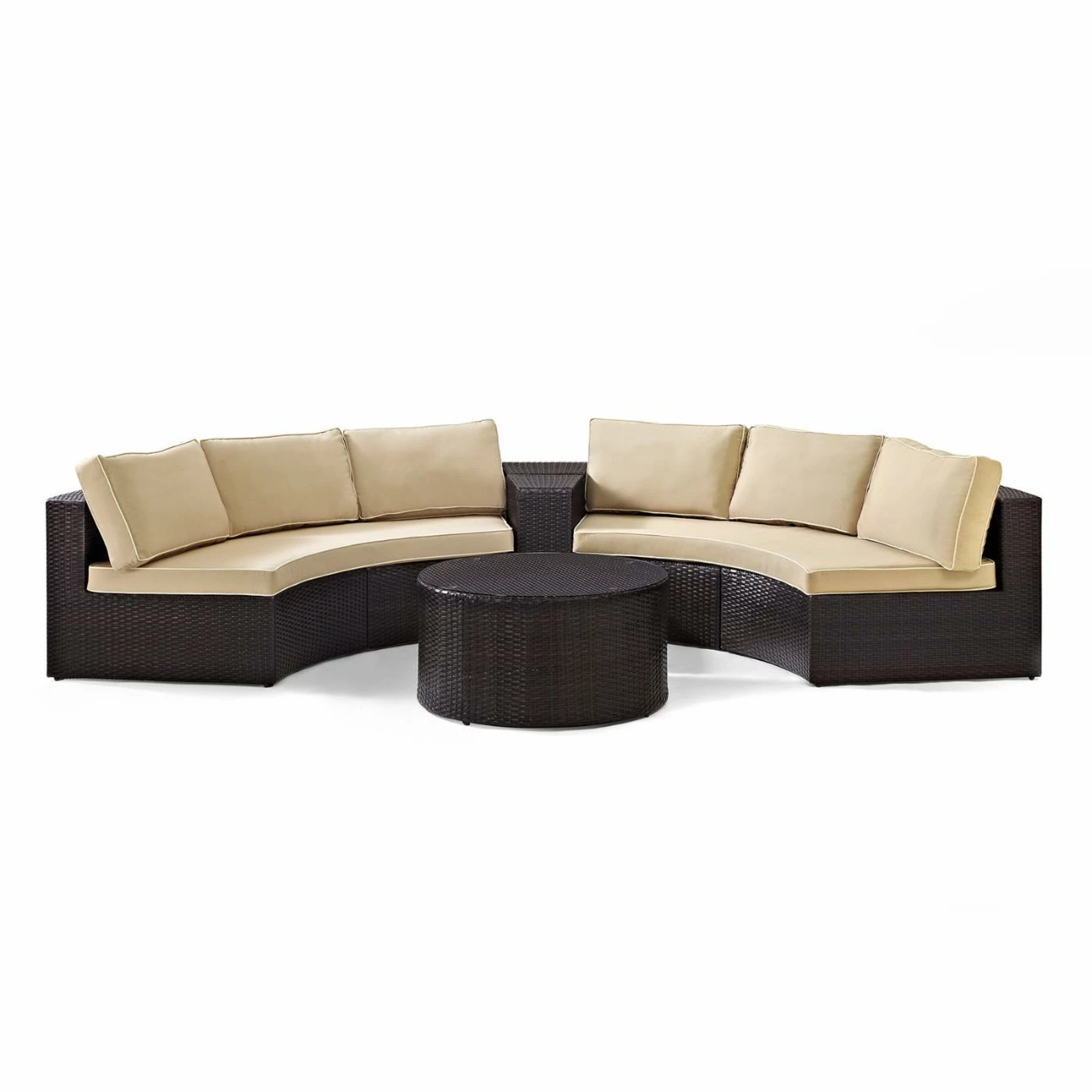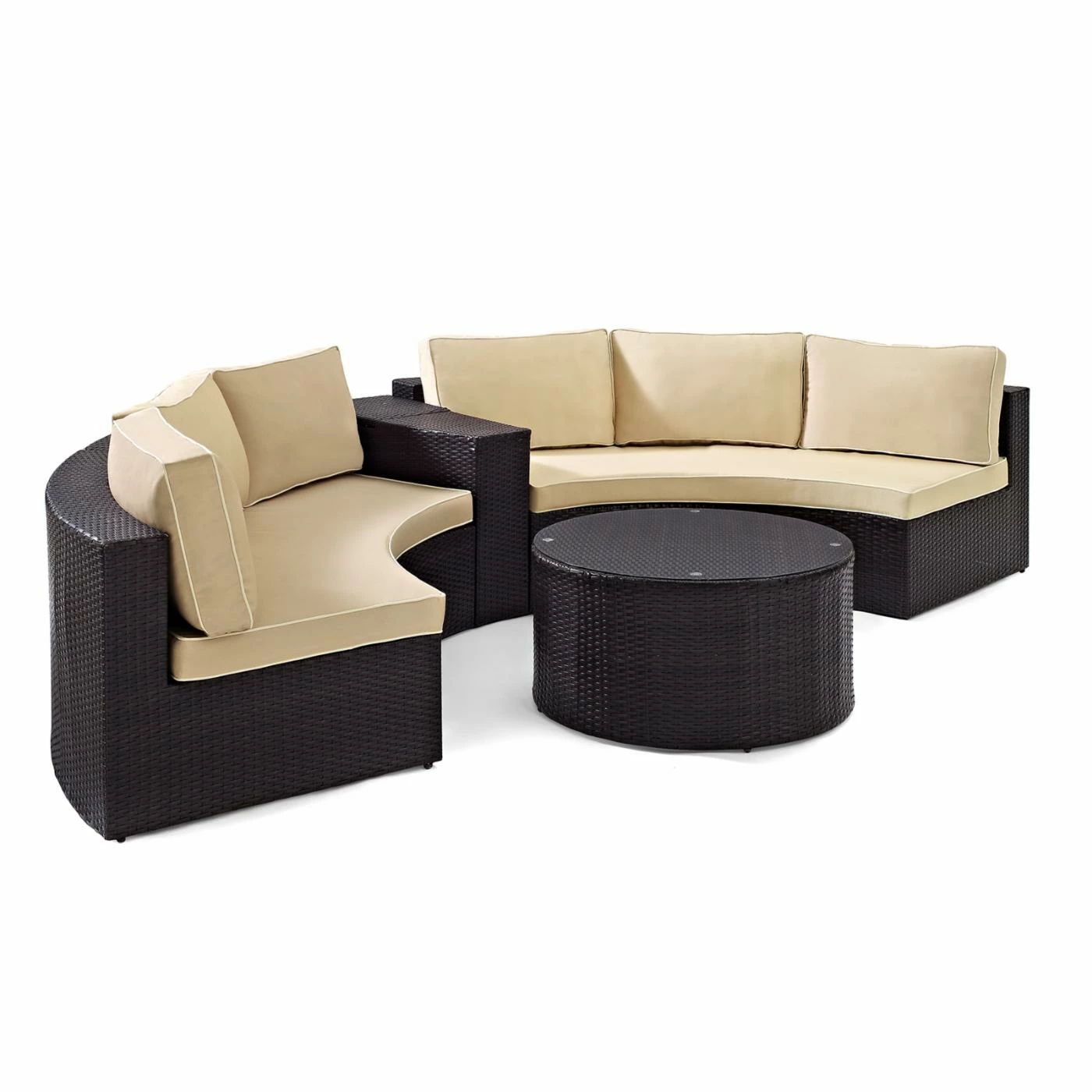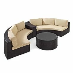 With a patio sectional as inviting as the Crosley Catalina 4 Piece Outdoor Wicker Curved Conversation Set, youโll want to invite the whole neighborhood over for some conversation. After all, the set comes complete with everything you need for the perfect patio: two curved sectionals, a coffee table, and an arm table. Just add some drinks and snacks and youโve got nothing short of paradise.