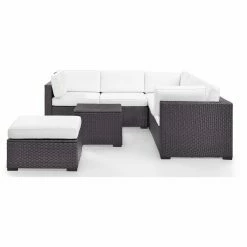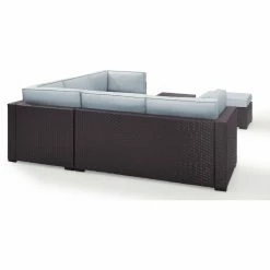 From board game night to watching-the-sunset night, it’s easy to make the most of every family evening with the Crosley Furniture Biscayne Resin Wicker 5 Piece Loveseat Conversation Set. It comes complete with two loveseats and a corner chair to form a sectional as well as a coffee table and ottoman. Each piece is crafted of sturdy steel with UV-resistant brown resin wicker, and the removable polyester cushions, available in a choice of color, are water- and stain-resistant.