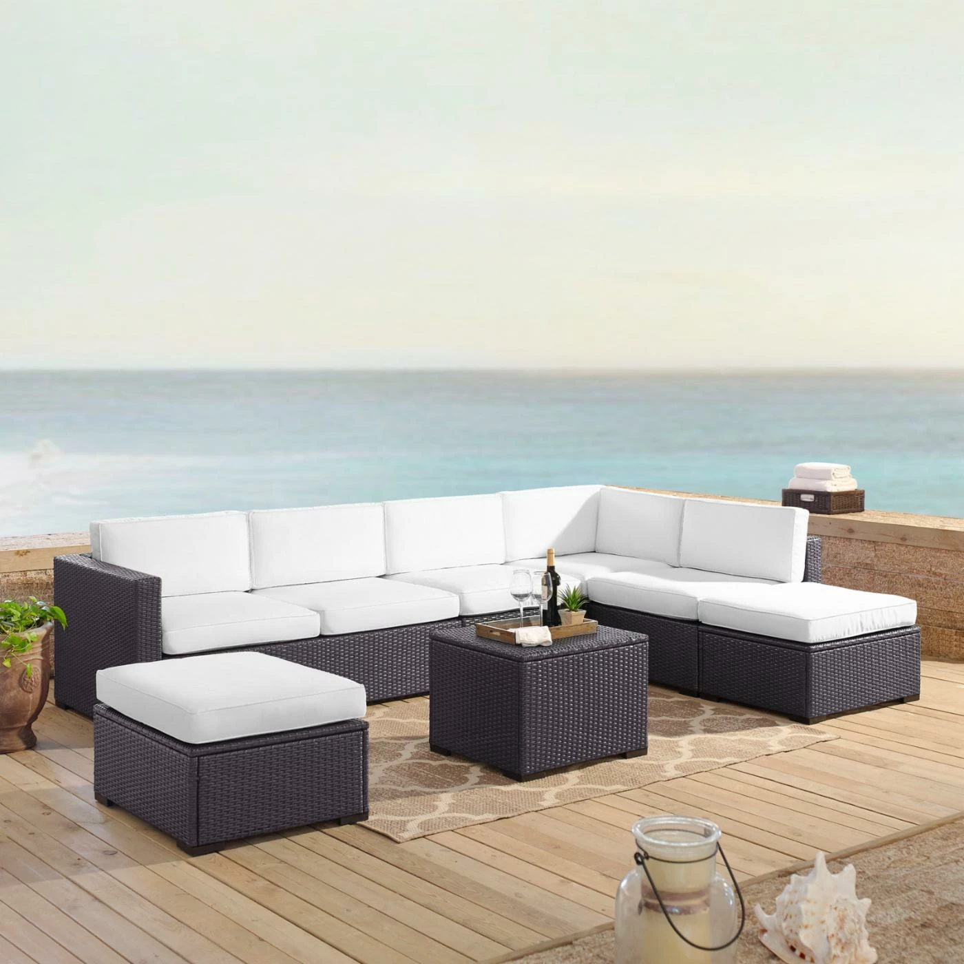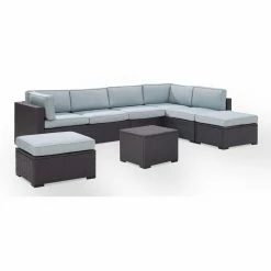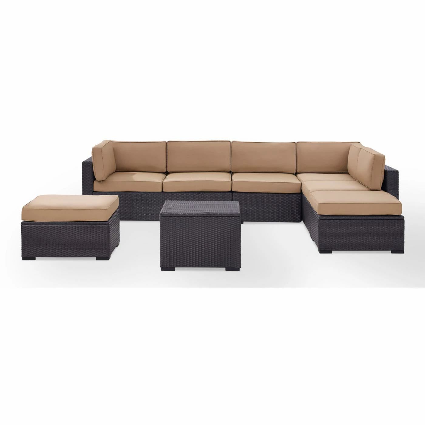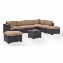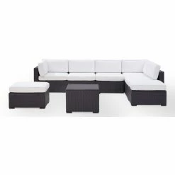Great patios start with great seating arrangements, and the Crosley Furniture Biscayne Resin Wicker 6 Piece Conversation Set with Two Ottomans definitely delivers. Two loveseats, one armless chair, and two ottomans form the sectional, and this outdoor seating set also includes a coffee table for snacks, drinks, and more. Each piece is crafted of sturdy steel woven with UV-resistant brown resin wicker. Available in a pick of color, the removable cushions are made of moisture-resistant polyester.