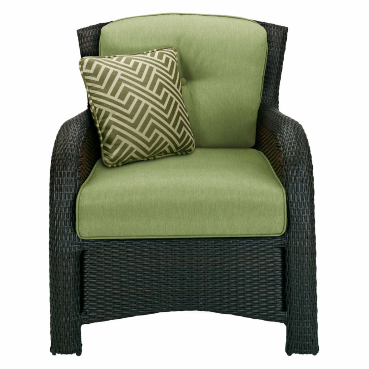 - Cushions are wrapped in stain-, water-, and UV-resistant olefin fabric