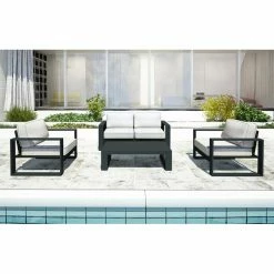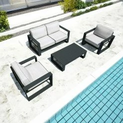 Gather your friends for a beach day getaway – right in your backyard! – with the Harmonia Living 4 Piece Portal Sofa Patio Conversation Set. This set includes a luxurious loveseat, two chairs, and eight removable Sunbrella cushions with room enough for all your guests. Made with durable aluminum frames, mildew-resistant cushions, and high-density polyethylene recyclable wicker that won’t fade or crack in the sun, this set is as outdoor-friendly as it is edgy. Complement this set’s modern style with your choice of available frame and cushion colors and create an oasis custom-fit to suit your needs.
