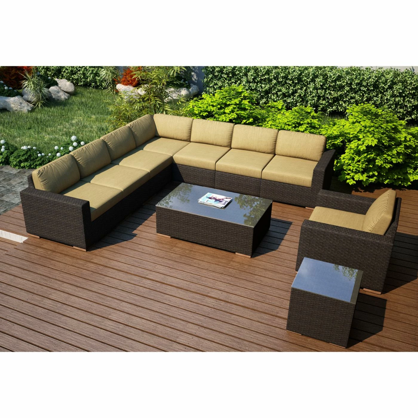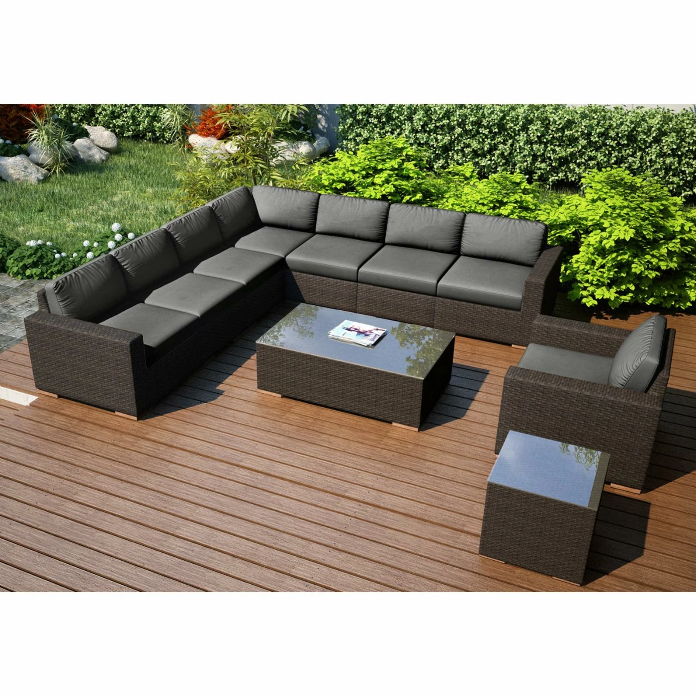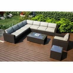 - 10-piece patio conversation set with sectional sofa
