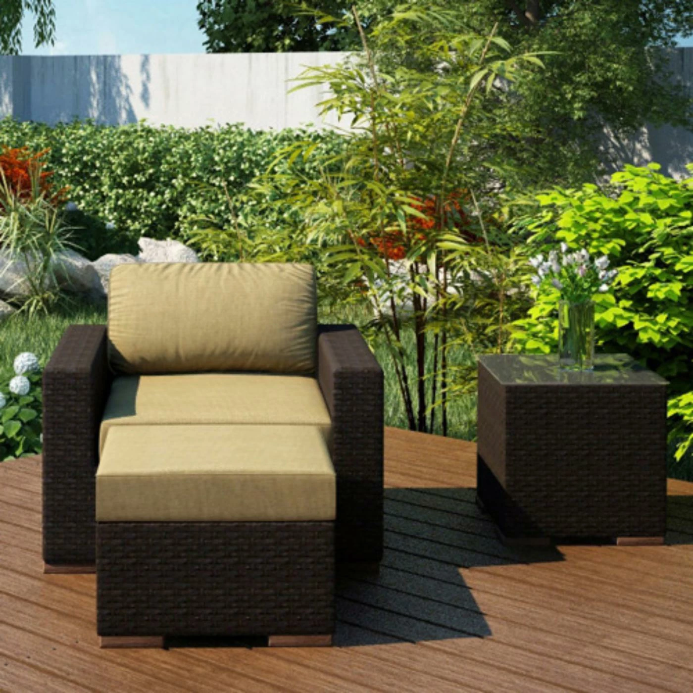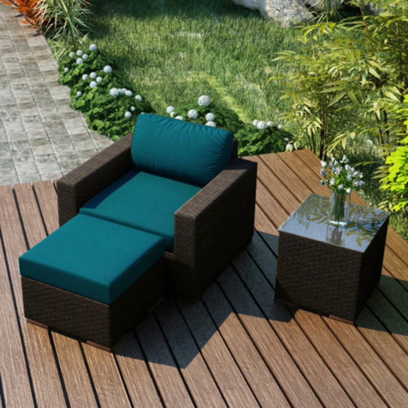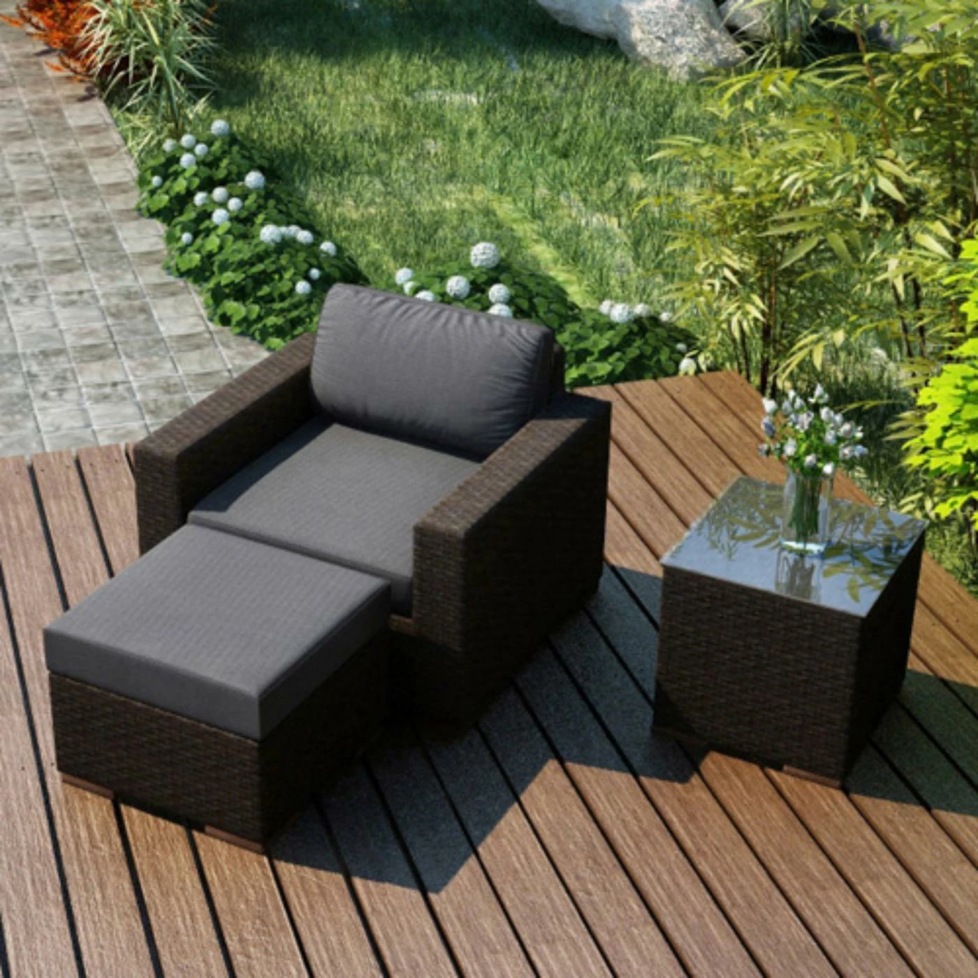 - 3-piece outdoor set lets you put your feet up in style