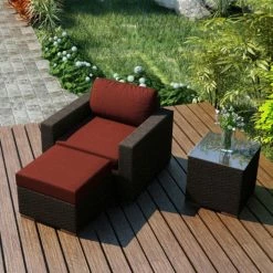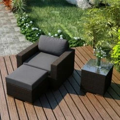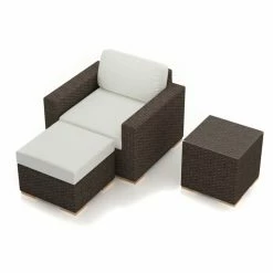 The Harmonia Living Arden 3 Piece Club Chair Set is like grow-your-own garden kit, but instead of growing basil, you’re cultivating free time and a place to kick back. This set includes a club chair with a matching ottoman and side table. The club chair is appointed with a set of 5-inch-thick foam cushions that are covered with the Sunbrella fabric cover of your choice. Made from high-density polyethylene (HDPE), the woven resin wicker has the look and feel of authentic wicker, but unlike traditional wicker, it’s highly resistant to moisture, weathering, and fading. That same, all-weather durability is matched by the fade-resistant Sunbrella fabrics that make up the zip-off, tie-back cushion covers. Each cushion is filled with quick-drying polyurethane foam that’s wrapped in Dacron to prevent mildewing. Take a few minutes to check out the other pieces that we have to offer in the Harmonia Living Arden collection.