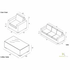 - Club chair: 28.5W x 34.75D x 30H in.