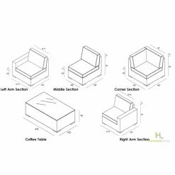- Left/right arm section: 32.75W x 34.75D x 30H in.