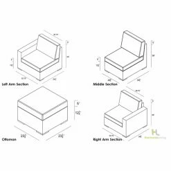 - Left/right arm sectionals (each): 32.75W x 34.75D x 30H in.
