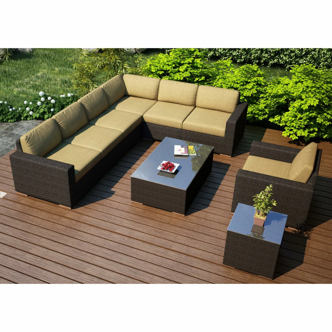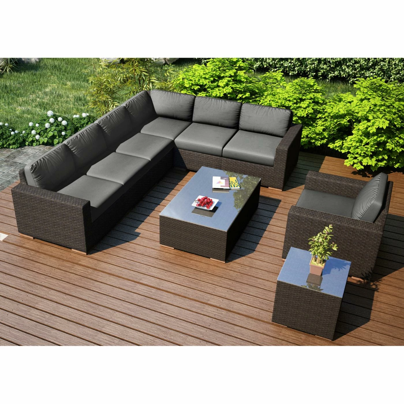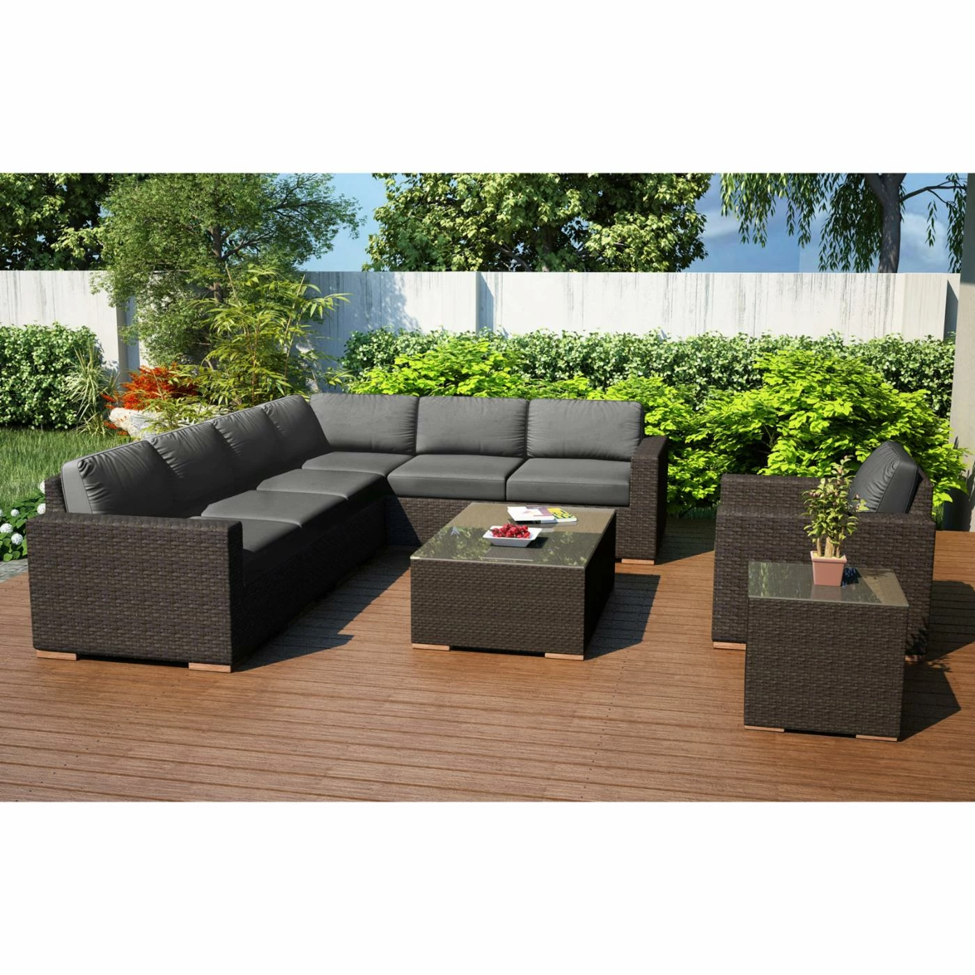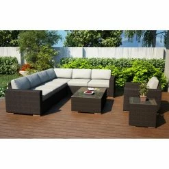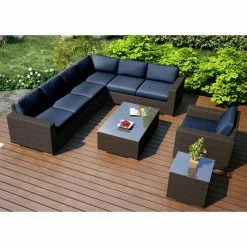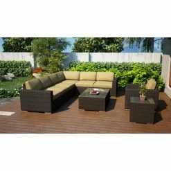 - 9-piece patio conversation set with sectional sofa