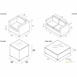 - Club chair: 36.25W x 34.75D x 28.25H in.