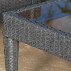 With flat-sided chairs and arching lines, you’ll love the mid-mod look of this HN Outdoor Tiburon Wicker 4 Piece Patio Conversation Set. High arching armrests nestle you in. Resin wicker is outdoor friendly and breezy cool, and the double-thick fabric cushions are extra soft. Choose from available color options. Matching coffee table has glass top.