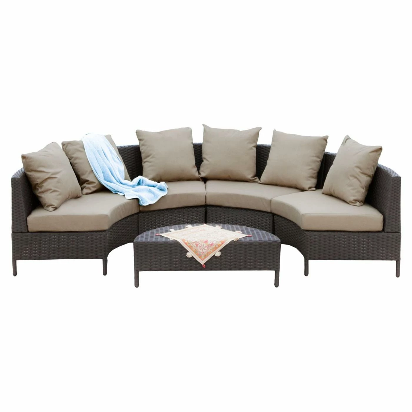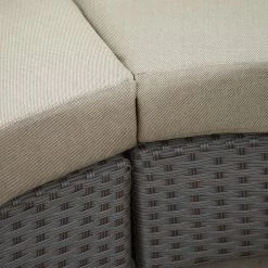 Lounge in comfort with this HN Outdoor Virden 5 Piece Patio Conversation Set. Perfect for a deck or patio, this set includes two loveseat sofas, coffee table, and ottoman. Made of iron, polyurethane wicker, and polyester, it’s design to seat up to six people. Covered in a rich brown finish with beige upholstery, this set radiates modern elegance.