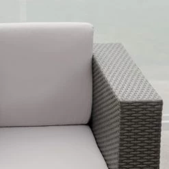 - Durable PE wicker construction in a gray finish with aluminum frame