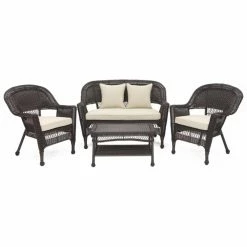 The Jeco 4 Piece Wicker Conversation Set allows you to just go ahead and bring the living room outdoors. Consisting of a coffee table, loveseat, two chairs and cushions for each seat, the set is constructed with a steel frame and all-weather resin wicker than can withstand any season and won’t crack, fade or warp. Best of all, it can be washed easily with a garden hose so you have more time to enjoy your backyard.