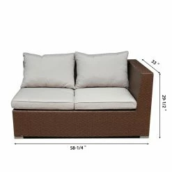 Create a comfy cozy outdoor area with the Magari Furniture Wicker 5 Piece Sectional Patio Conversation Set. Gather your friends and family to sit out and enjoy good conversation on the deep seated, cushioned chairs and sectional sofa. The included detachable cushions are mildew resistant and feature removable covers for easy cleaning. Arrange the pieces in a separated format or complete the sectional sofa by pairing the corner sofa with the left armrest and right armrest double sofas. The double sofas also act as storage boxes where you can store outdoor blankets, cushions, or towels. The chair can be placed in any spot next to or across from the sofa for an inviting look. The glass-top coffee table is the perfect location for drinks and snacks, decorations, or a bug repellent candle. The frames of the pieces in this collection are constructed from aluminum wrapped rattan wicker. Place this versatile conversation set on a patio or deck, next to your pool, around a fire pit, or in a sunroom.