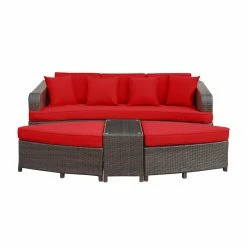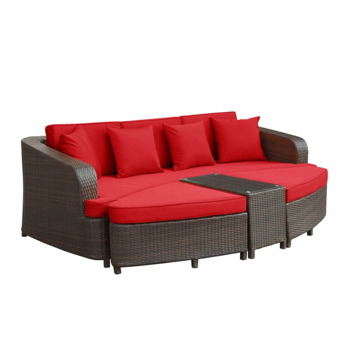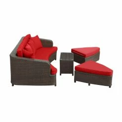 Long live the free spirit of Monterey, and long live the Modway Monterey Conversation Set. This whimsical conversation set infuses fun and fancy into your backyard decor. With cleverly curving ottomans and a cube-like coffee table that can be pulled out from a large outdoor sofa, this set is full of possibilities for entertainment configurations. Pulled all together the set saves space and can be used as a type of daybed with imbedded drink tray, perfect for viewing outdoor evening movies. But pulled apart, these pieces are tremendous for having friends frequent your home with lots of seating and surface space to go around. The handsome wicker rattan is colored in a rich dark Espresso that beautifully matches any outdoor decor. And with a choice of cushion color, you can truly make this set your own, finding the perfect shade to compliment your tastes and other outdoor furnishings. Because of the materials used in constructing these pieces, including all-weather resin wicker rattan and a powder-coated aluminum frame, you can count on them lasting season after season and year after year.