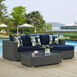 You outdoor living space will be even more livable thanks to the Modway Sojourn 3 Piece Sunbrella Outdoor Patio Loveseat Conversation Set. Coming complete with a sofa, ottoman, and coffee table with a tempered glass top, this patio conversation set is built tough thanks to its water- and UV-resistant design. Powder-coated aluminum frames are woven with synthetic rattan in a charcoal color, and the industry-leading Sunbrella cushions are available in a choice of color. The covers remove easily for machine washing, and you’ll love how this patio conversation set arrives pre-assembled.