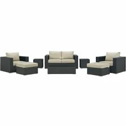 You’ll spend so much time on the Modway Sojourn Wicker 8 Piece Patio Conversation Set, that you might start to forget the little things like which drawer has the silverware or where you usually keep the TV remote. This won’t be a problem, because you’ll be lounging outside for years on this premium, all-weather set. The look of traditional wicker gets a modern, two-tone upgrade with the use of resin wicker. Synthetic wicker is superior to natural wicker, as it can resist rotting, cracking, and UV-related fading that makes traditional wicker so fragile after it’s left outdoors. Each piece has a lightweight frame of strong, rust-proof aluminum, and the seating pieces are all fitted with five-inch thick foam cushions covered in Sunbrella fabric. Sunbrella is known for making textiles that are fade-resistant and designed for outdoor use. You’ve got multiple fabric colors to choose from, so be sure to take a look around and see which one is going to be the most fetching on your porch or patio.
