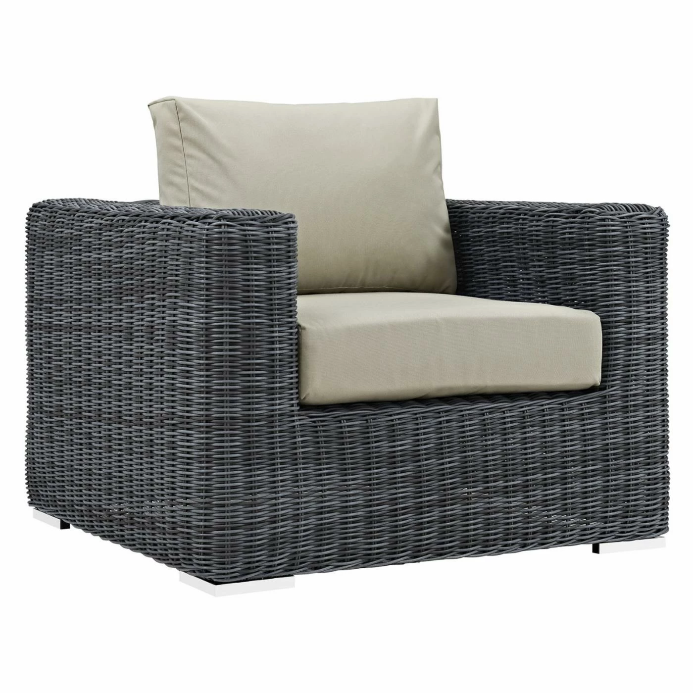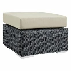 Watch the kids scrimmage in the yard as you and your partner look on in comfort from the Modway Summon 3 Piece Wicker Conversation Set. This three-piece set includes two armchairs and an ottoman, each with a beautiful contemporary design. Each of the pieces begins with a powder-coated aluminum frame with block feet. Gray-finished synthetic rattan overlays the frame, providing a natural, hand-woven look. Foam-padded seat and back cushions are included, boasting removable antique-beige covers that are machine-washable and resistant to moisture damage.
