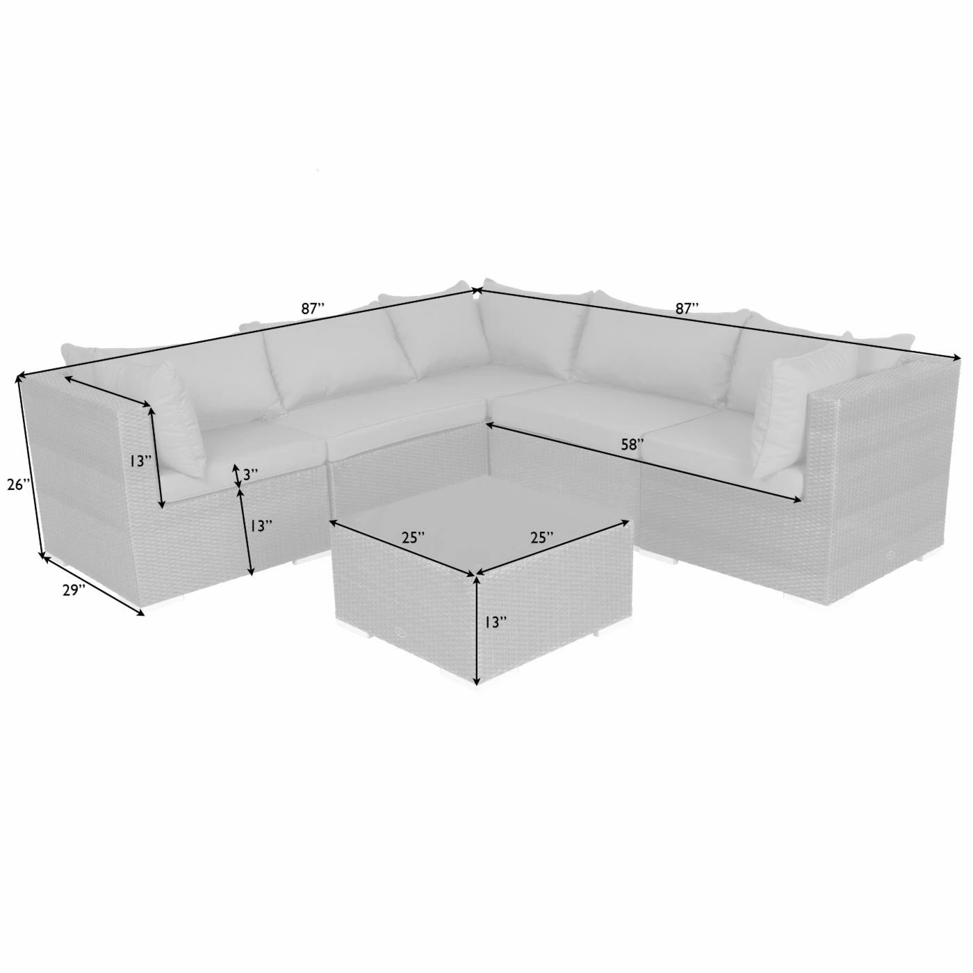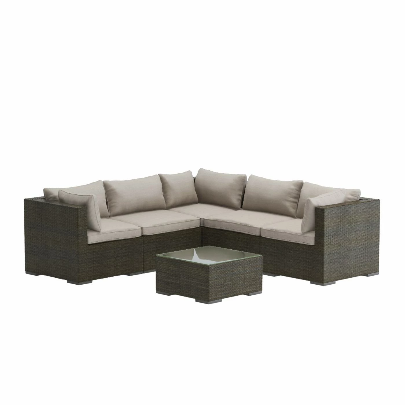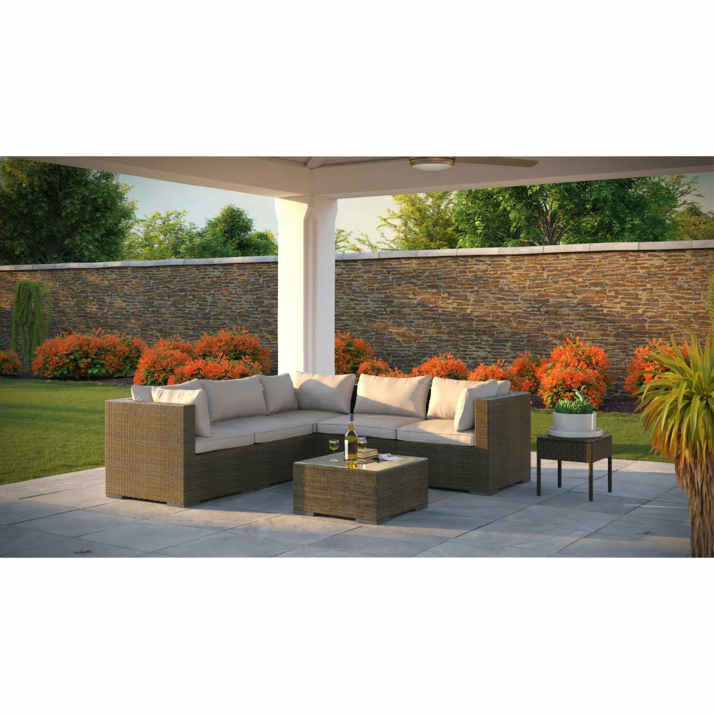 Enjoy dinner outdoors, drinks under the stars, or just a casual afternoon lounging in the breeze all seated on the Patio Sense Sino Wicker 6 Piece Patio Conversation Set. This beautiful patio set has a lightweight, yet durable steel frame and is constructed with all-weather wicker that comes in a rich mocha finish. The set includes five sturdy seats with a modular design, so you can configure the arrangement however you like. The seats come with all-weather, extra-cushy seat cushions, pillow-style seatback cushions, and two throw pillows for exceptional comfort. The coordinating coffee table is also constructed of all-weather wicker and has a sturdy glass top, the perfect place to rest an assortment of snacks, cookout platters, drinks, or your favorite summertime page-turner.