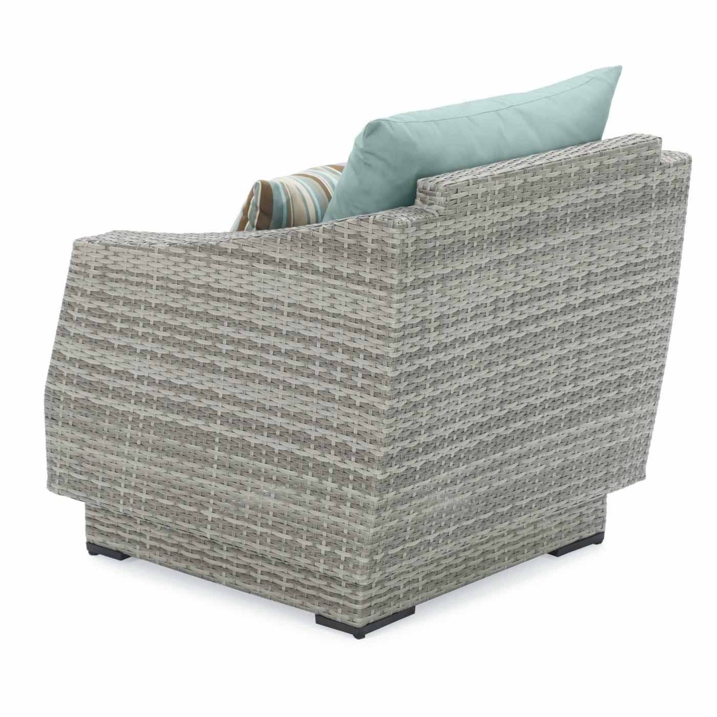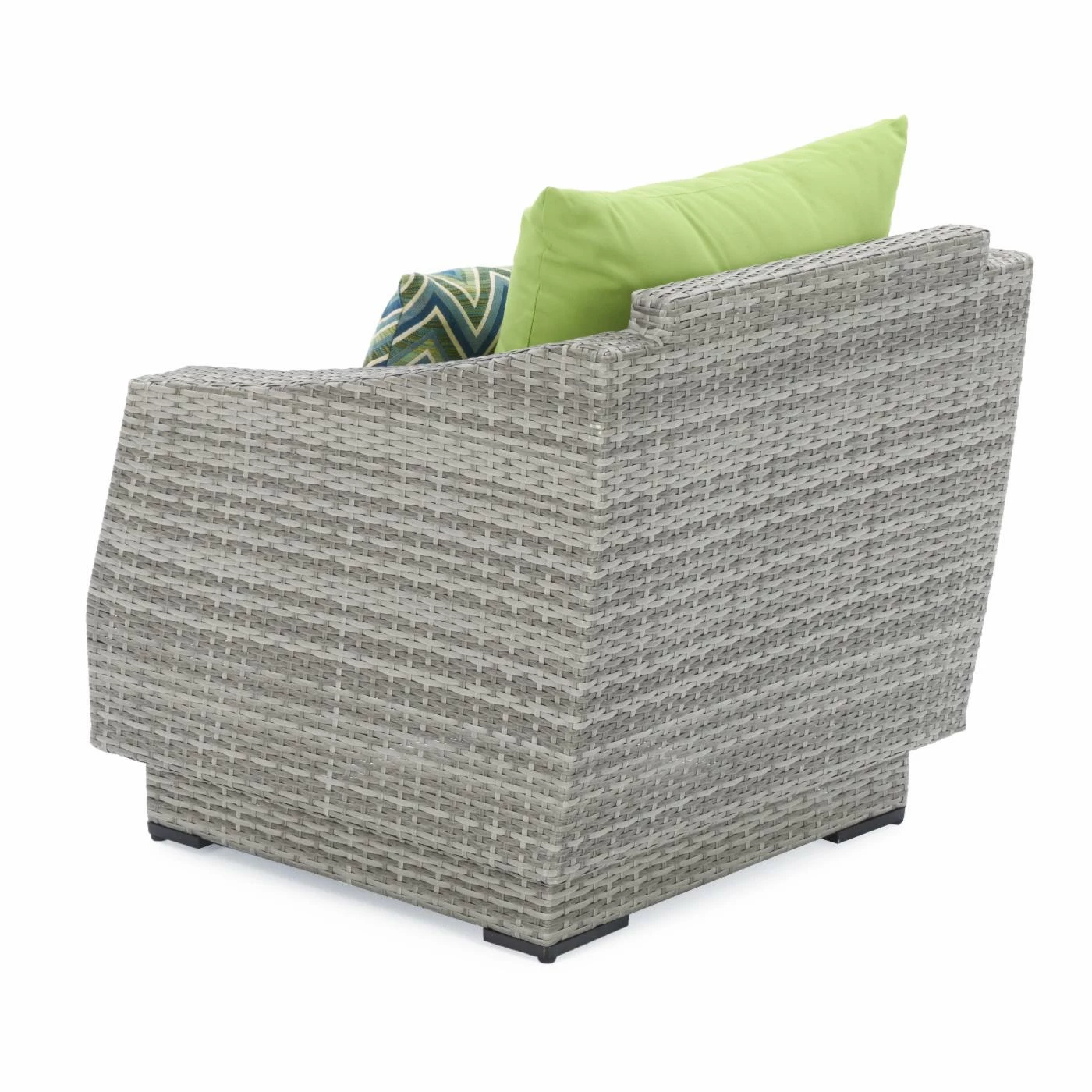 - Resin wicker in shifting shades of weathered grey