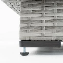 - Hand-woven, two-tone gray SolarFast resin wicker