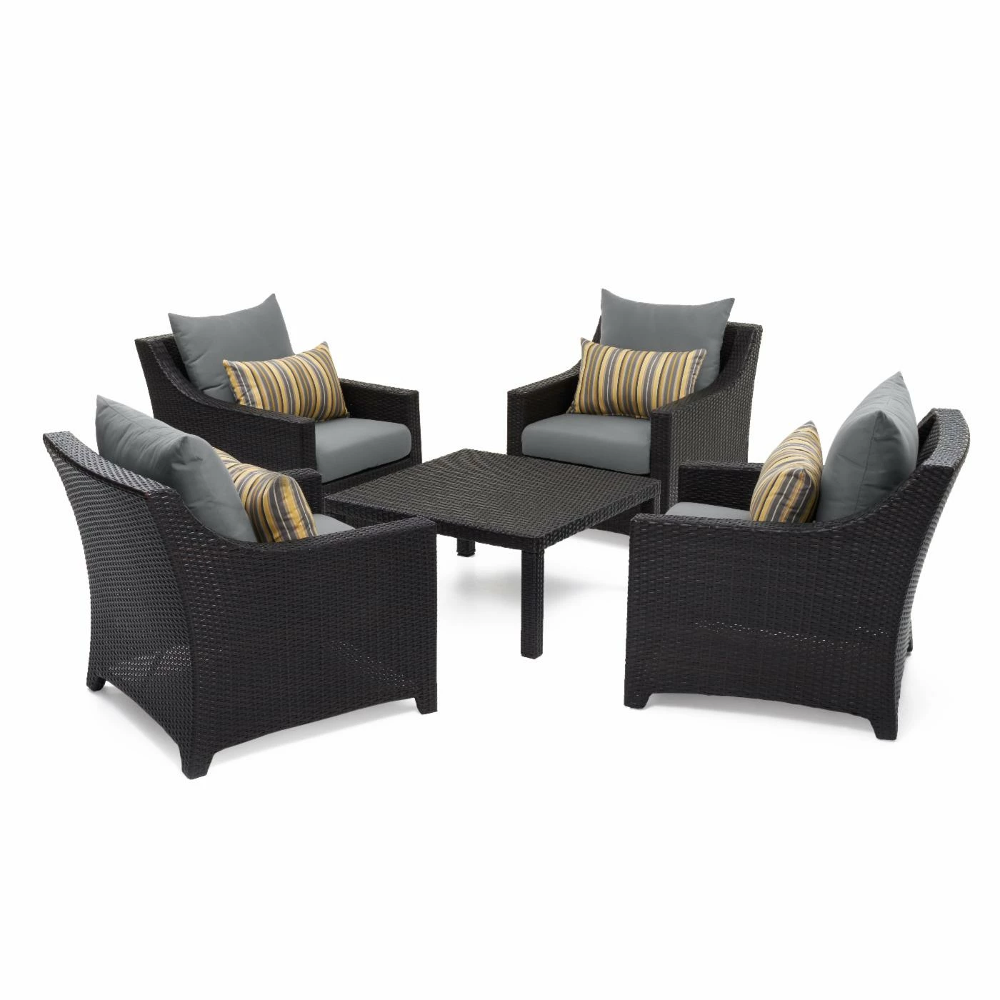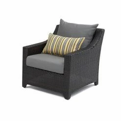 Ideal for outdoor entertaining, the RTS Brands Deco 5 Piece Club Chair and Coffee Table Conversation Set seats up to four guests with comfortable, deep seating perfect for enjoying each other’s company. Beautiful pieces are made of durable materials which are built to last, ensuring years of enjoyment without ever leaving your own home. Elegant, hand-woven Espresso resin wicker characterizes the Deco Collection, creating an elegant outdoor living space.