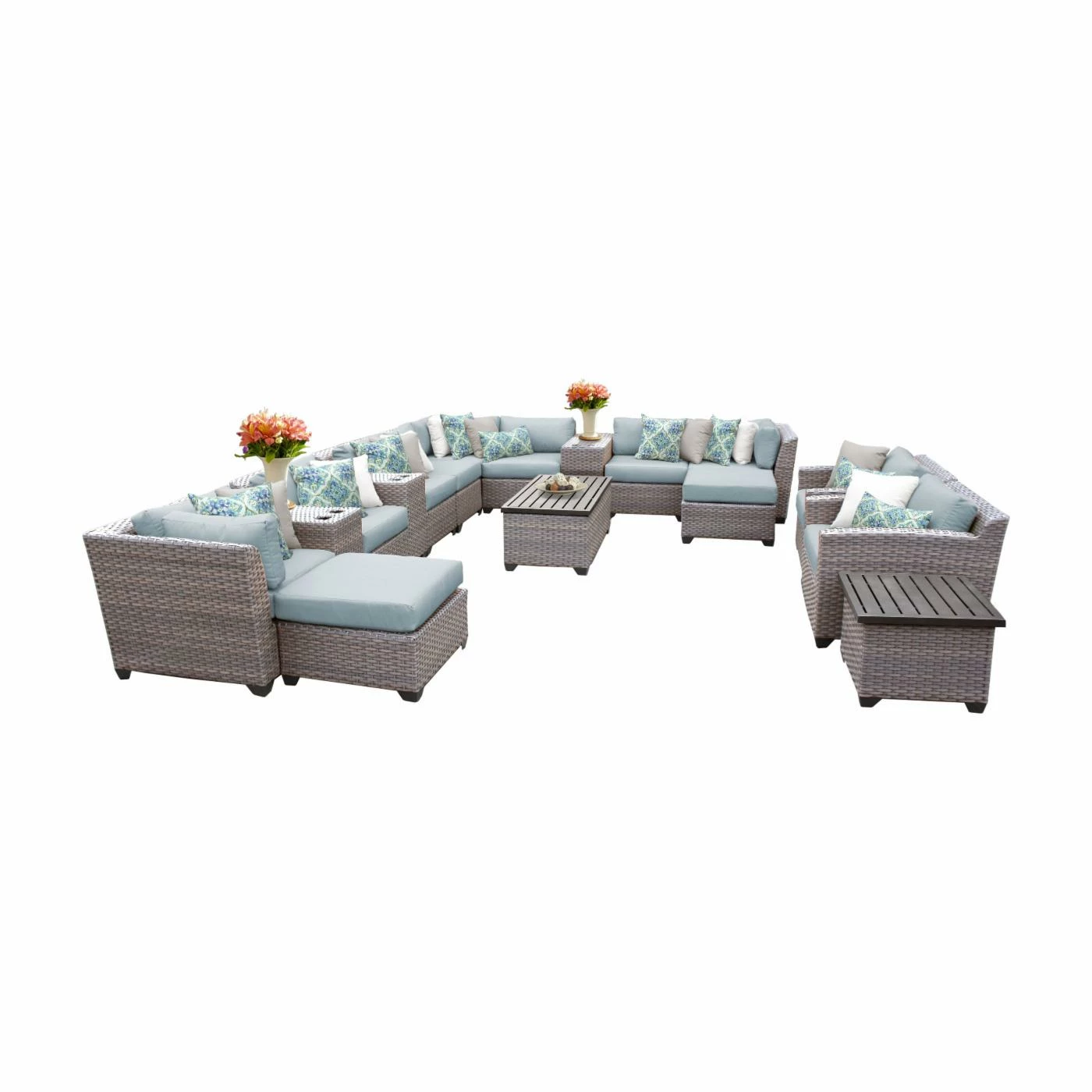 Because nothing’s too good for your crew, the TK Classics Florence Wicker 17 Piece Patio Conversation Set with 2 Sets of Cushion Covers offers the ultimate in style and comfort. There’s seating for your whole entourage with this modular set; multiple configurations are possible. Each cup table holds two drinks and can be used between seating pieces or at the ends. Create one huge sectional sofa or individual chairs, loveseats, and sofas. Premium quality materials are weather-resistant, and this set includes an extra set of fade-resistant, washable cushion covers for longer wear. Towels and cold drinks are within easy reach thanks to the rectangular storage table. Tables feature slatted cast aluminum tops with durable powder-coat finishes.