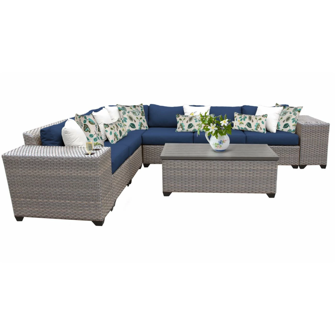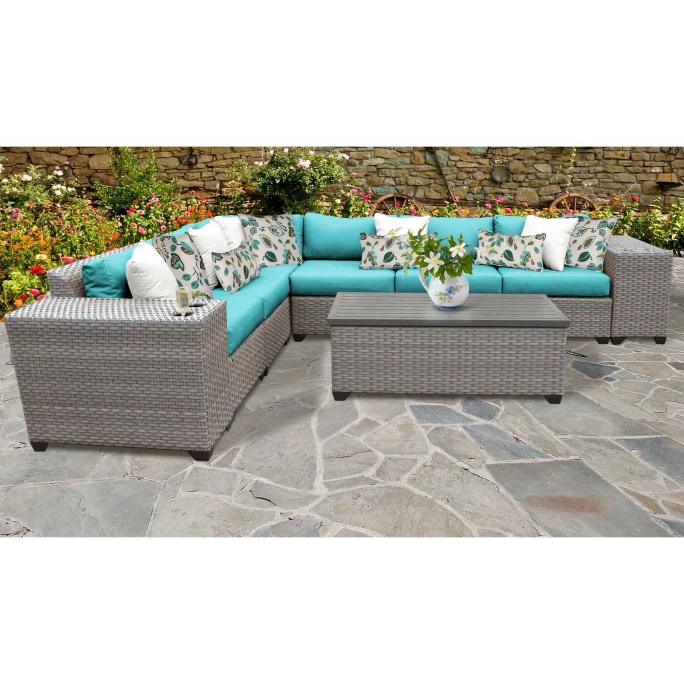 Let the TK Classics Florence Wicker 9 Piece Patio Conversation Set with 2 Sets of Cushion Covers entice you to spend more time enjoying the great outdoors. This modular set allows room for stretched-out-in-the-sun Saturdays as well as showing off your view while entertaining. The cocktail table features a slatted cast aluminum top that lifts so you can access convenient storage space. From the all-weather PE wicker in timeless gray to the triple-reinforced seating decks, this set is engineered to last. Two cup holder tables are included, offering extra support to keep drinks upright during windy conditions.