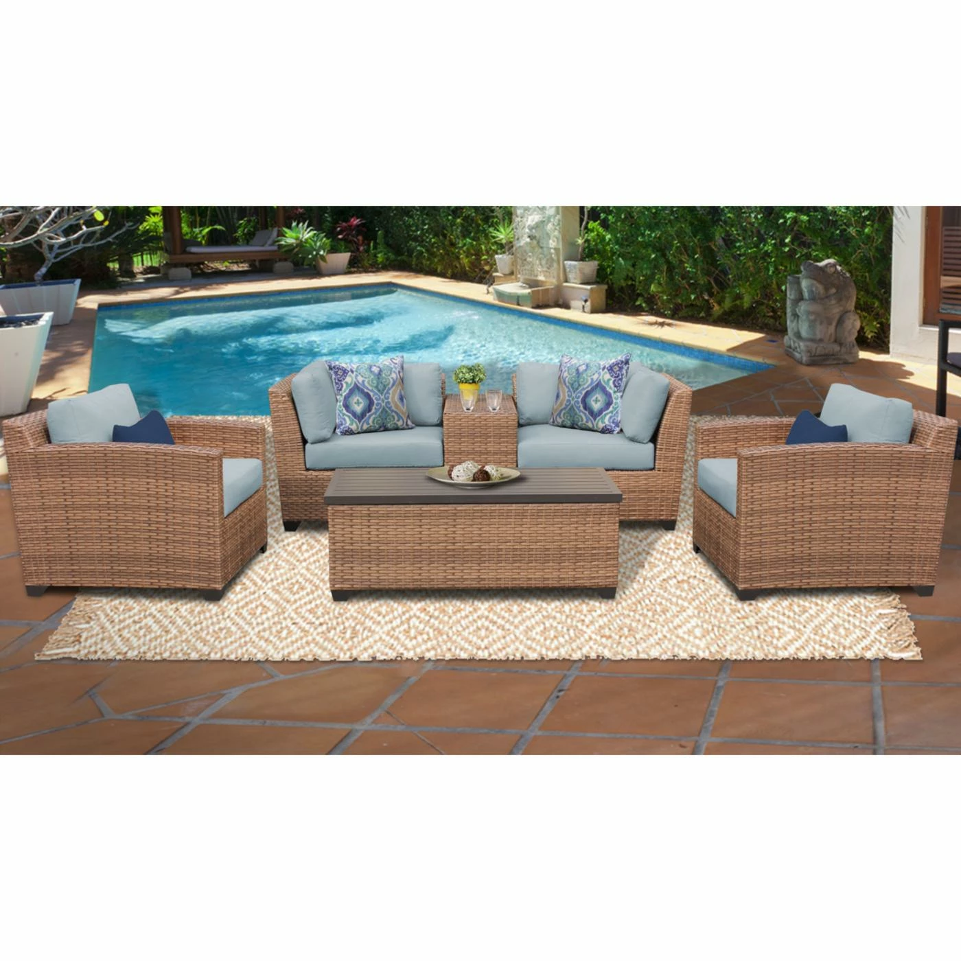 Ready, set, summer with the TK Classics Laguna Wicker 6 Piece Patio Conversation Set with Club Chair and 2 Sets of Cushion Covers. All ready for that perfect weather, this patio conversation set includes two corner sections and two club chairs, plus a cup table and coffee table, whose cast aluminum top flips up to reveal a hidden storage area. Each piece in this commercial-grade set is built tough, with a rust-resistant powder-coated aluminum frame hand woven with all-weather high-density polyethylene wicker in a caramel color. Best of all, you’ll get two sets of zippered acrylic cushion covers that are washable and fade resistant.