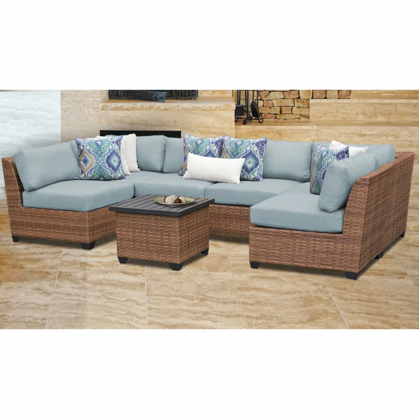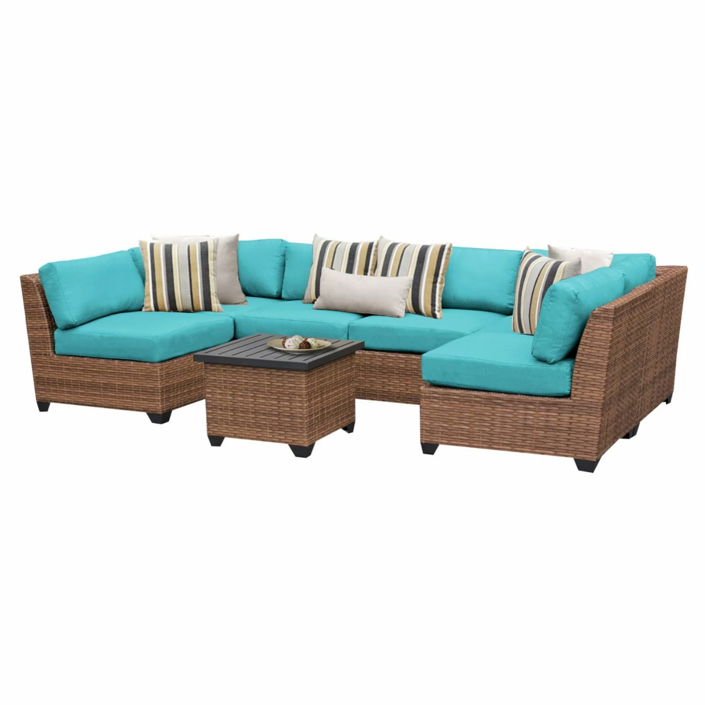 If you love spending time outside with your favorite people, you’ll adore the TK Classics Laguna Wicker 7 Piece Patio Conversation Set with End Table and 2 Sets of Cushion Covers. Four armless sections and two corner sections form a sectional sofa, while the end table, complete with powder-coated cast aluminum top, is sized just right for a tray of snacks. With a commercial grade design, this conversation set is crafted of rust-resistant powder-coated aluminum frames hand woven with all-weather polyethylene wicker in a caramel color. Best of all, you’ll get two sets of zippered cushion covers with this set. They’re crafted of acrylic that’s fade resistant as well as washable for fuss-free care.