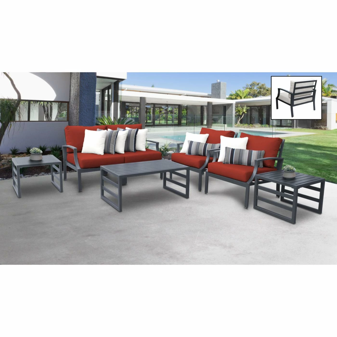 The TK Classics Lexington 07d 7 Piece Aluminum Outdoor Patio Conversation Set is built to be comfortable, long-lasting, and convenient. That’s why seat and back cushions come with removable acrylic covers (for easier cleaning) and the aluminum frames feature a powder coating (to protect against rust).