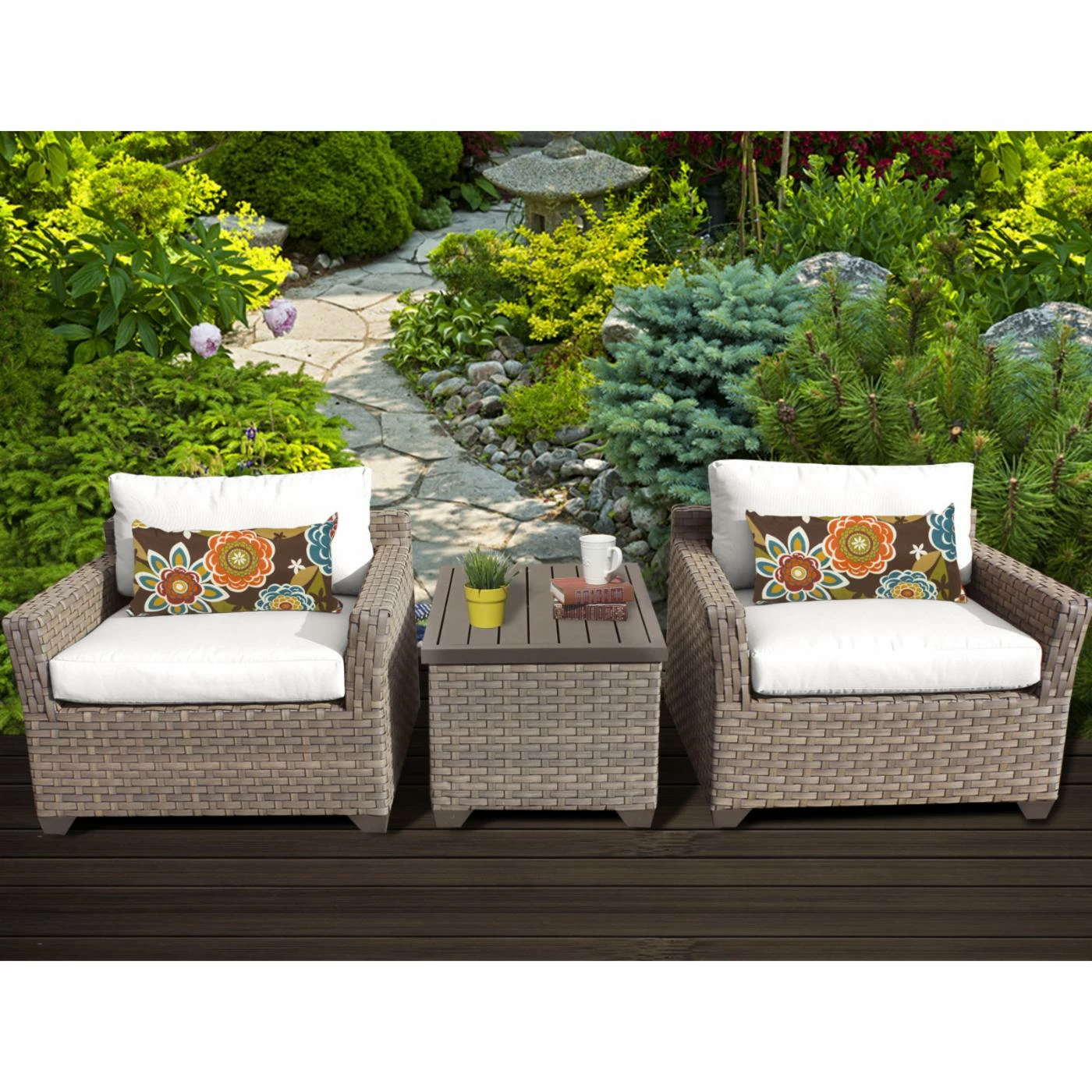 - Patio table and two armchairs
