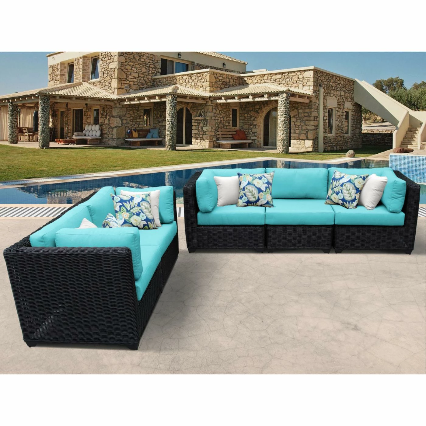 Thoughtfully designed with enhanced-strength construction, the TK Classics Venice 5-Piece Outdoor Wicker Patio Conversation Set delivers comfort and lasting quality you’ll love and clean, simple style for your patio setting. This set includes four corner sofas and an armless sofa, which you can arrange exactly to your liking. Each piece is constructed of custom hand-woven, all-weather, full-round, high-density polyethylene Chestnut Brown wicker wrapped twice over rust-resistant, powder-coated aluminum frames to durably resist the elements. Thick, double-wrapped foam cushions made to effectively withstand the weather provide support and comfort and are available in select colors for a decorative touch. The zippered cushion covers are removable and washable for easy cleaning, and you can let them air dry for best results.