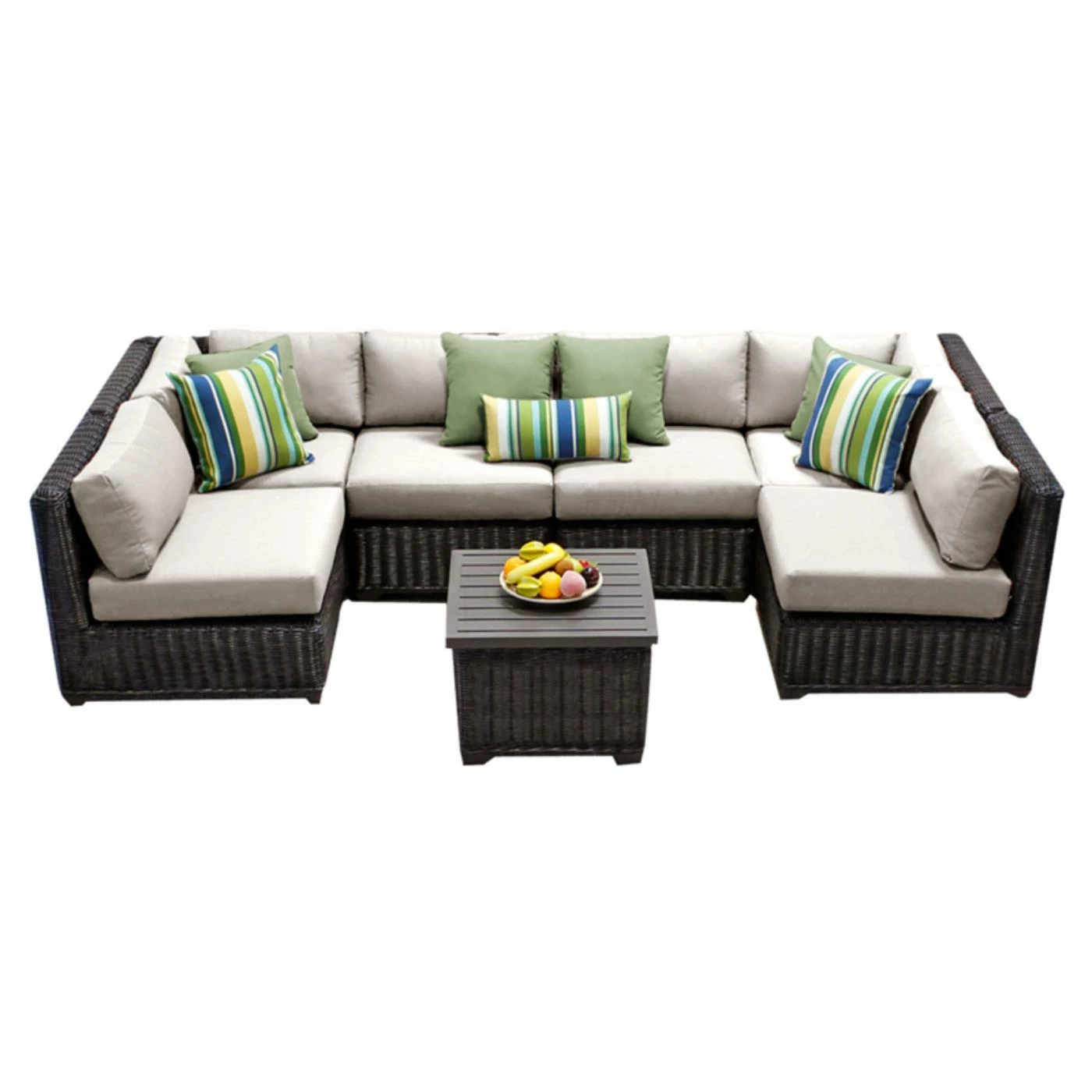 Stepping out into your back porch can feel like entering a luxury resort when you furnish your outdoor space with the TK Classics Venice Wicker 7 Piece Patio Conversation Set with End Table and 2 Sets of Cushion Covers. This lavish, all-weather ensemble features commercial-grade construction that includes a rust-resistant, powder-coated aluminum frame concealed by rich brown fibers made from high density, polyethylene wicker. The end table is topped with long-lasting cast aluminum in classic slatted styling and the six modular sofa pieces includes seat and back cushions comprised of double-wrapped foam and wheat fabric covers that’ll never fade. Want a splash of color as well? The set also ships with a second set of cushion covers in your choice of color.