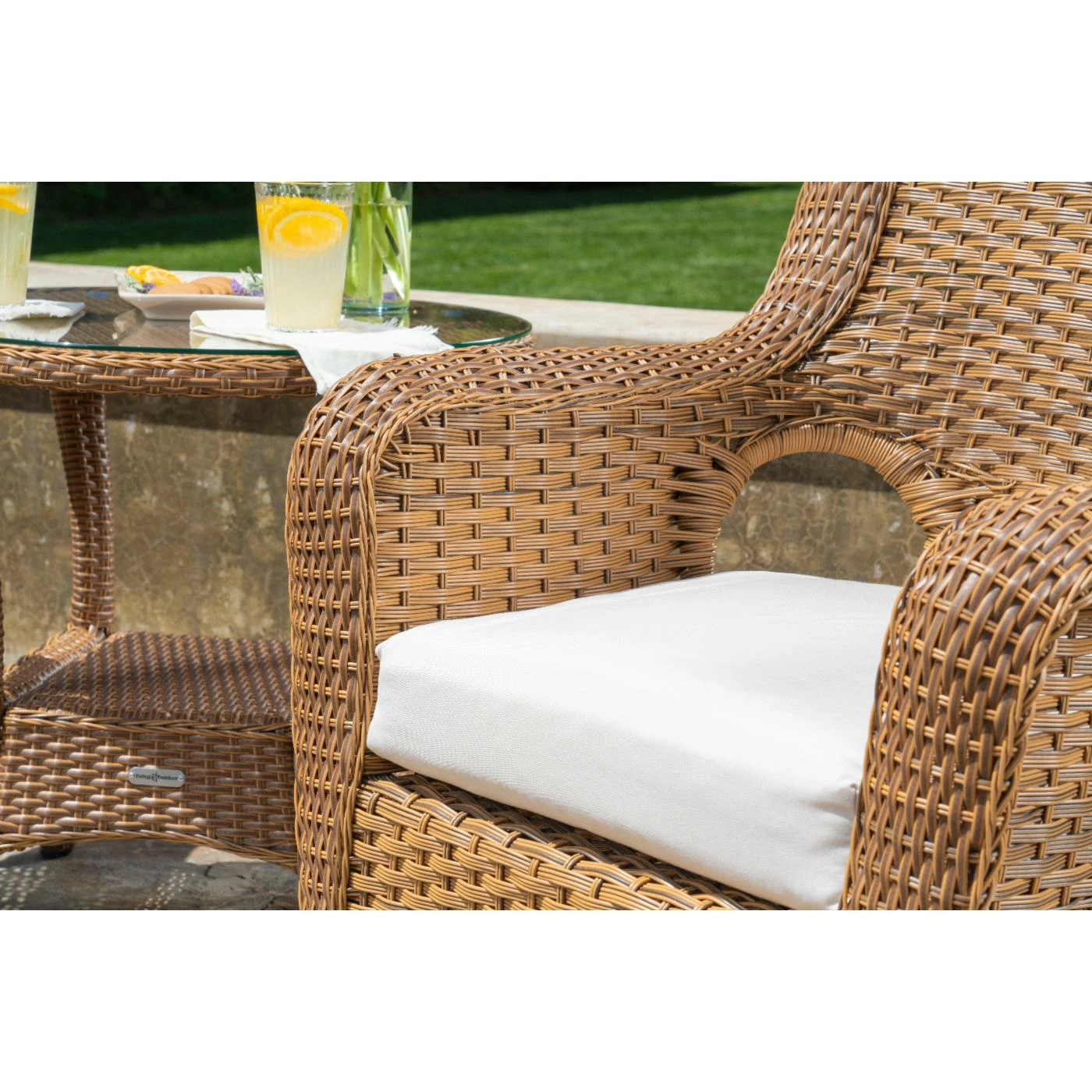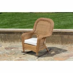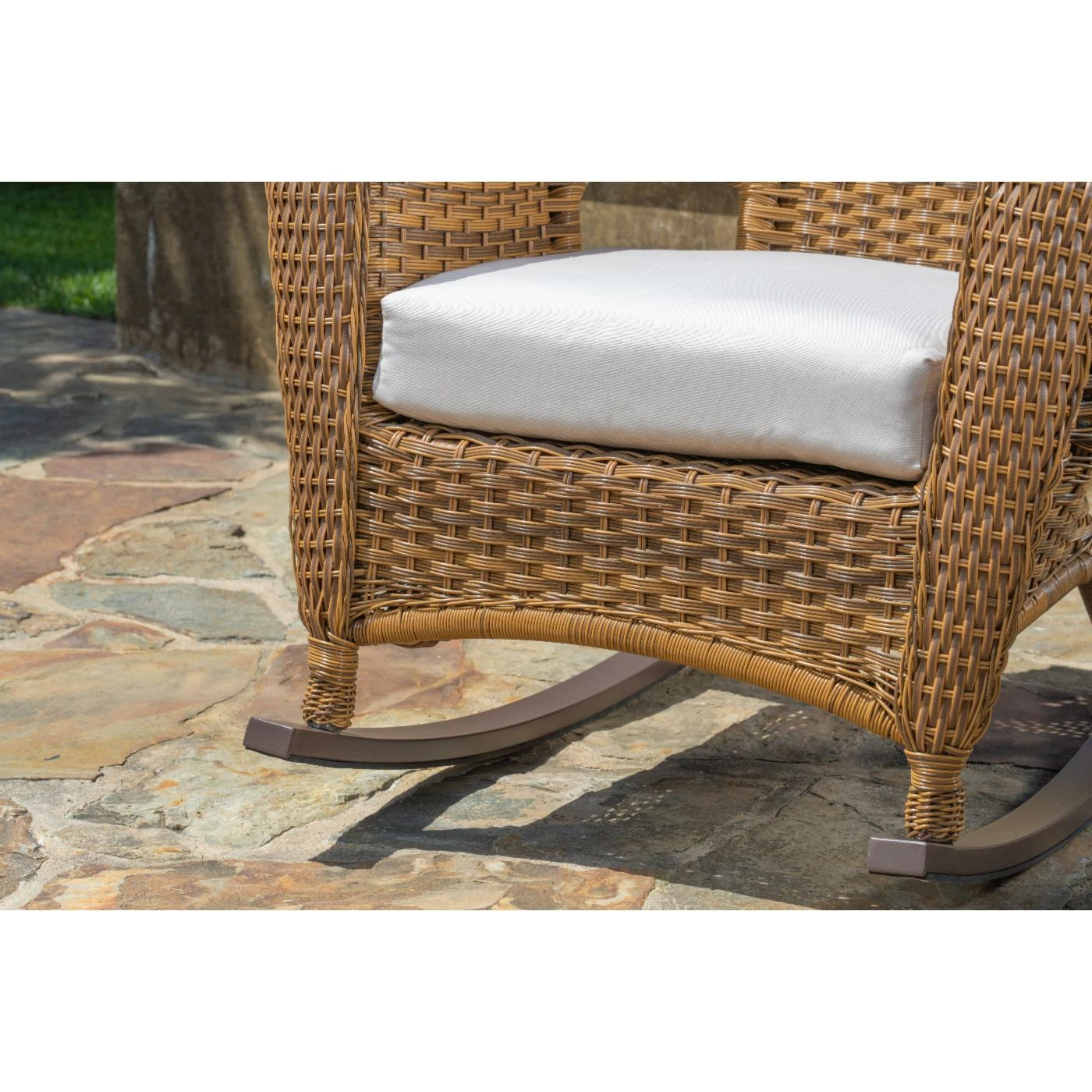 The Sea Pines Rocker is a show-piece to any outdoor space. This beautiful set comes in either Java or Mojave finishes, and will outlast any simple wicker set and sits more comfortably too with its plush polyester cushions and sleek resin wicker design.