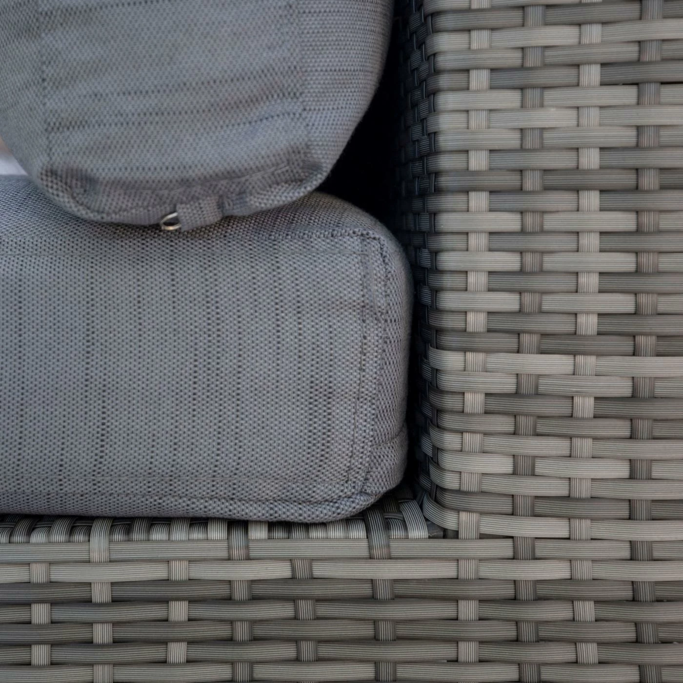 - Removable polyester cushions in gray
