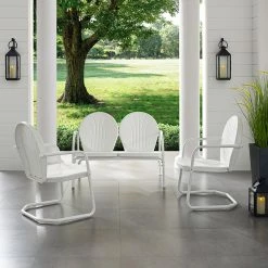 A good conversation requires the proper setting. Get it right with the Crosley Griffith 3 Piece Outdoor Metal Conversation Seating Set. This comfortable set is perfect for chatting with the family or catching up with old friends. Available in a variety of colors.