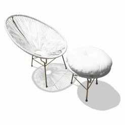 Soak up the summer sun in the Harmonia Living Acapulco 3 Piece Patio Chat Set. The modern, rounded design has a vintage beach feel and is sure to complement your outdoor space. The light, breathable netting and frame are reminiscent of popular 1950s and 60s Central American design. Made of recyclable polyethylene netting that is infused with UV inhibitors, you can rest assured the vibrant colors will last. A strong steel frame of powder-coated steel provides a durable base for you and your guests. Removable cushions can be placed on top of the side table to create a stylish ottoman.