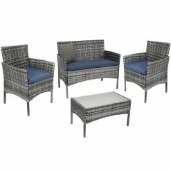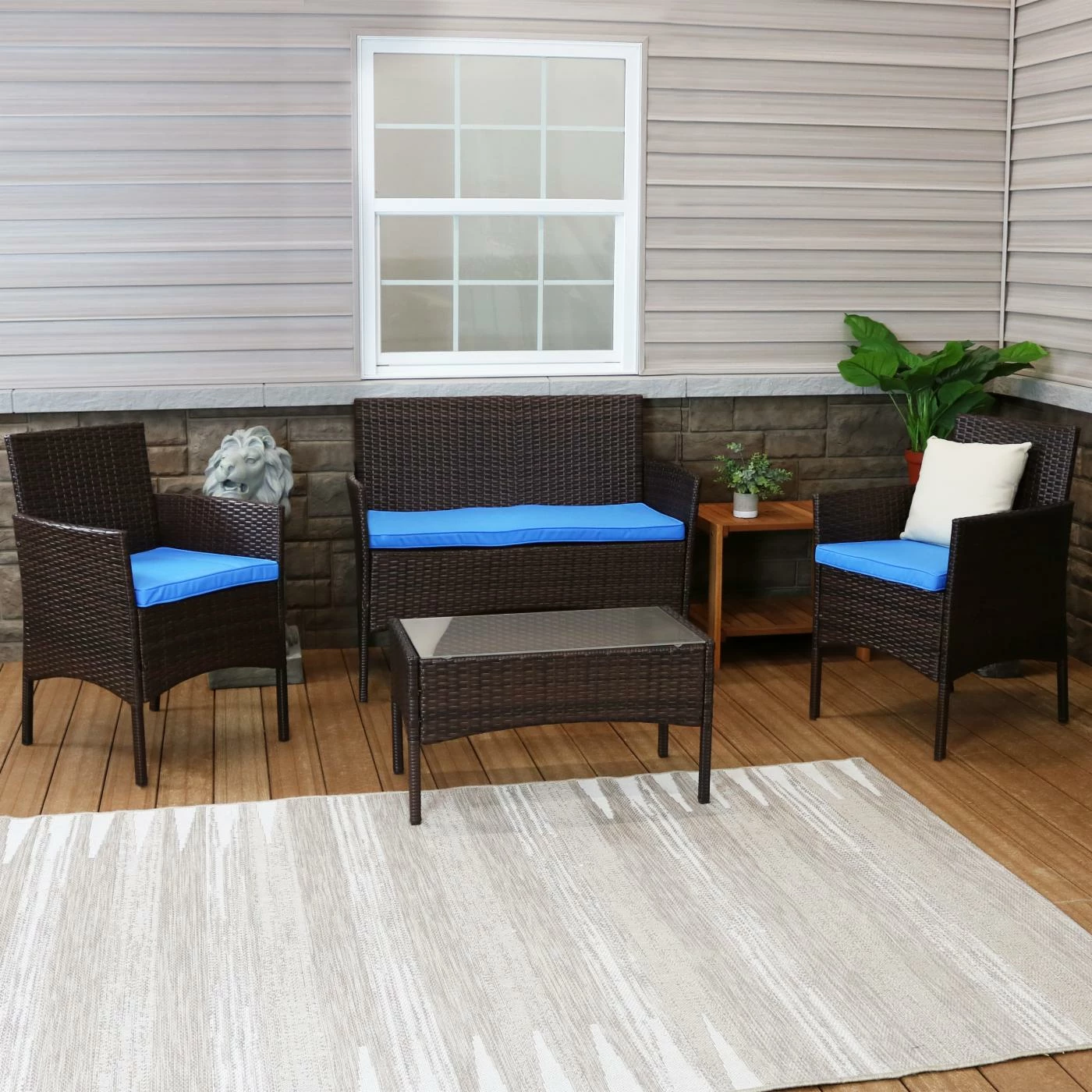 Best reviews of π€© Sunnydaze Decor Resin Wicker Patio Sets Sunnydaze Dunmore 4 Piece Patio Conversation Furniture Set – Brown And Blue π₯