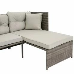 Enjoy a comfortable place to enjoy fresh air, lunches, BBQs, family parties, friend events, and more on your patio or balcony with this Longford patio sectional set. Complete with a comfortable chaise lounge sofa, coffee table and plush cushions, this outdoor furniture set is ideal for a variety of outdoor spaces, including the garden, porch, backyard and other living spaces outside the home. Plus, this versatile furniture set can be used indoors in a screened porch or in a bright sunroom during the cooler months. Each piece of furniture in this set looks like it is constructed of traditional natural wicker material but is actually made of durable resin rattan that is smooth to the touch and wont splinter. This material also allows this set to stand strong against the elements outdoors. With natural beauty, extra strength, and modern design, this patio set is the perfect addition to your home.