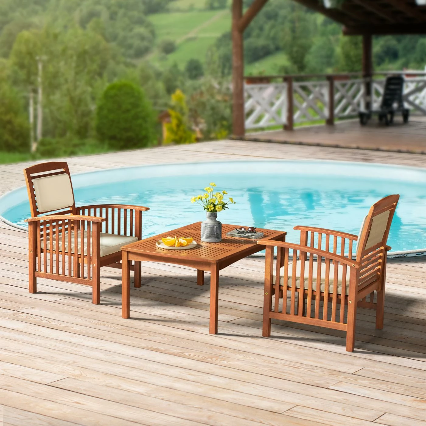 Brand new π Wood Patio Sets Alaterre Furniture Lyndon Eucalyptus Wood 3-Piece Conversation Set βοΈ