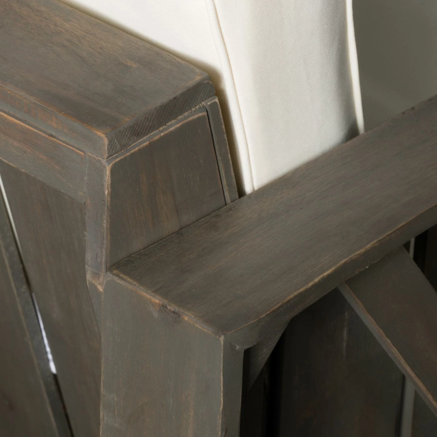 - Gray finish with cream upholstery