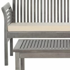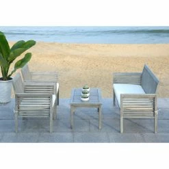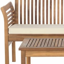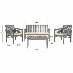 Easy sophisticated styling and weather-resistant construction make up the HN Outdoor Springville Acacia Wood 4 Piece Outdoor Conversation Set. The slatted designs on the acacia wood coffee table, bench, and chairs ensures quick drainage whenever it rains. All-weather polyester cushions on the bench and chairs make you feel cradled as you sit. Choose from multiple finish options.