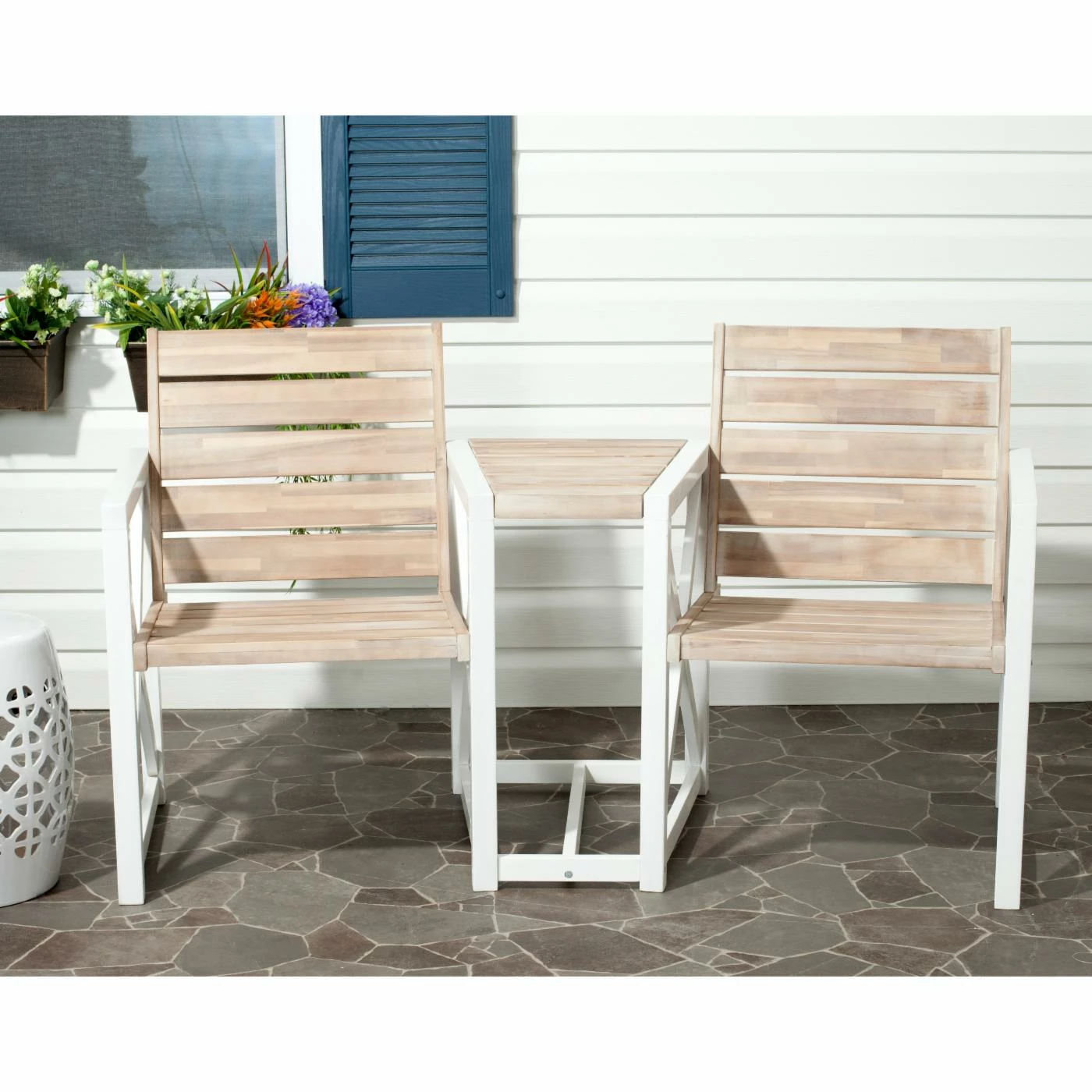 - Acacia wood frame, seat, and back