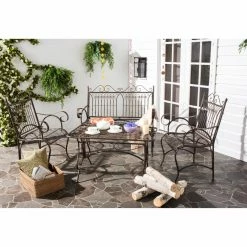 The Safavieh Leah 4 Piece Outdoor Conversation Set splashes turn of the century charm to your patio, deck, or garden. It boasts intricate wrought iron construction that is designed to endure the elements. Distressed detailing gives the table, loveseat, and chairs in this set weathered charm. Choose from multiple finish options to suit your style preferences.